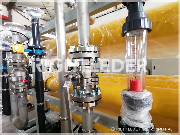 针对电厂高盐废水水量大、盐含量高、ρ( COD)高、硬度高、硅含量较高等特点,莱特莱德采用“来水+板式换热器+自清洗过滤器+超滤系统+极限分离系统+阴阳离子交换器+混床系统+除盐水箱”的系统处理工艺,经过换热器升温的原水进入自清洗过滤器及超滤装置,除去水中大颗粒杂质,如悬浮物、胶体、大分子有机物、微生物及细菌等,保证出水控制SDI15在3以内。并提高且恒定原水水温,保护后继反渗透系统的稳定运行,系统整体脱盐率和回收率均可达到在70%~80%。